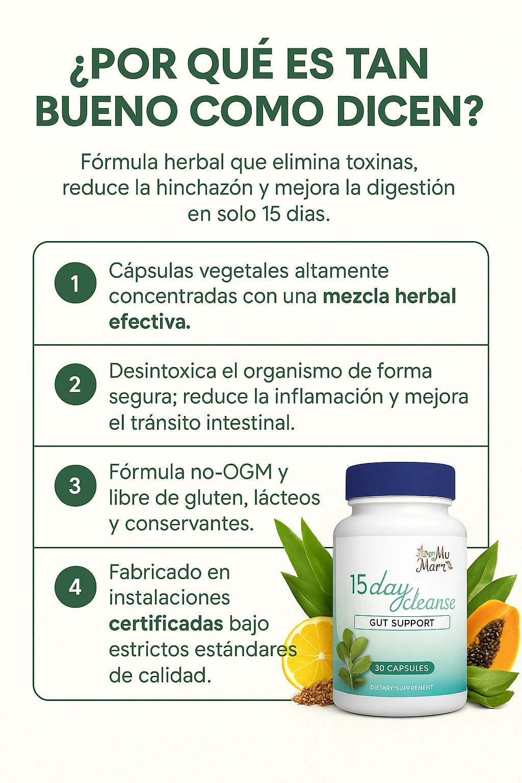 Con 15 Day Cleanse desinflama tu pancita y recupera tu bienestar digestivo en solo 15 días.